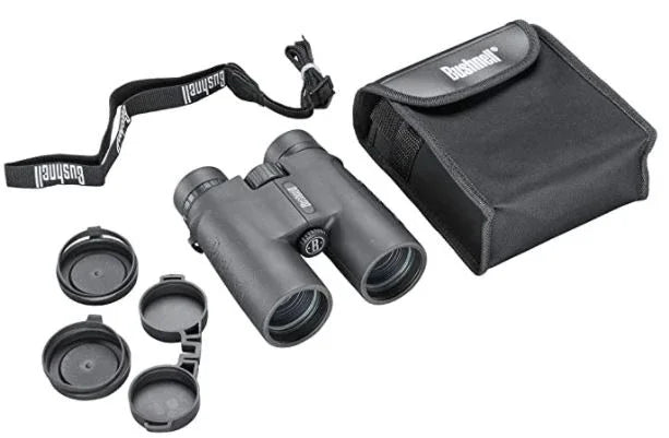 The Bushnell 10x42 Powerview is an affordable, fairly rugged model-and one of the most popular binoculars in the world.  As a multi-purpose tool delivering good optical performance, its multicoated optics produces fairly sharp, vivid imagery.  The 10x42 Powerview binocular incorporates non-slip rubber armor to absorb shock while providing a firm grip.